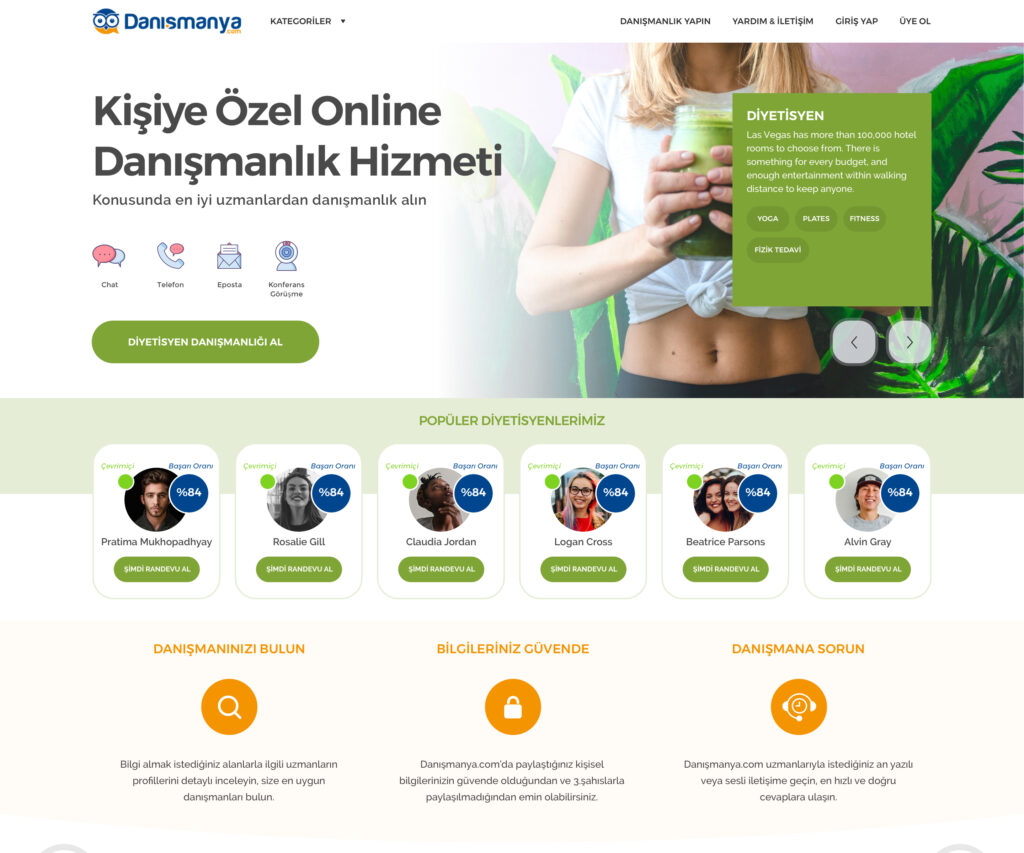 Danismanya.com (supportly.online in English) is a versatile online consultancy platform that connects users with expert professionals across various fields, including psychology, dietetics, and more. It offers personalized advice through secure and confidential communication channels, ensuring the protection of user data. Users can engage with consultants via text, video, or voice calls, either instantly or by scheduling appointments within 24 hours, making expert support accessible and flexible to fit their needs. Please check the link for the demo of the platform.